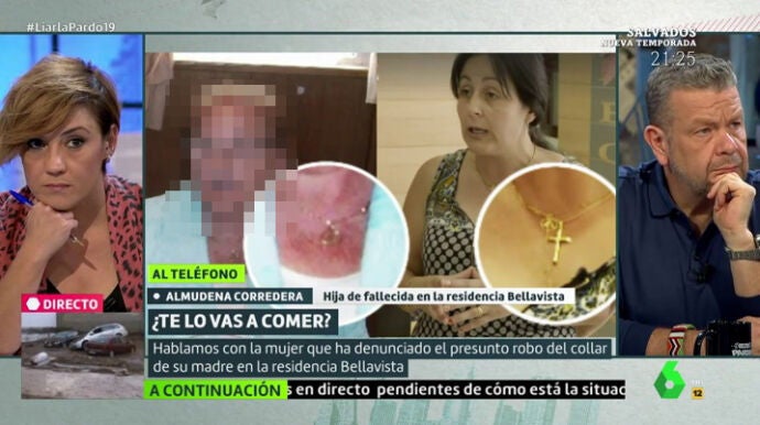Una persona tenía a su madre en una residencia de ancianos en Salamanca y cuando murió le faltaba una joya. El collar lo llevaba colgando la directora del centro y la familia se dio cuenta viendo el programa de Chicote Te lo vas a Comer. Lo han denunciado yLiarla Pardo tiene el documento.