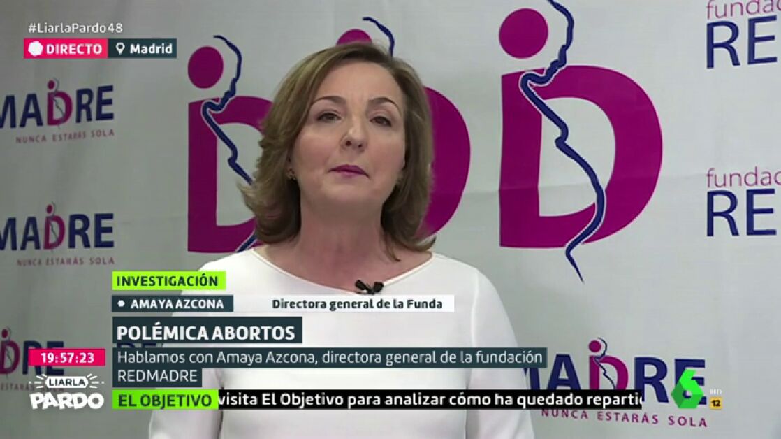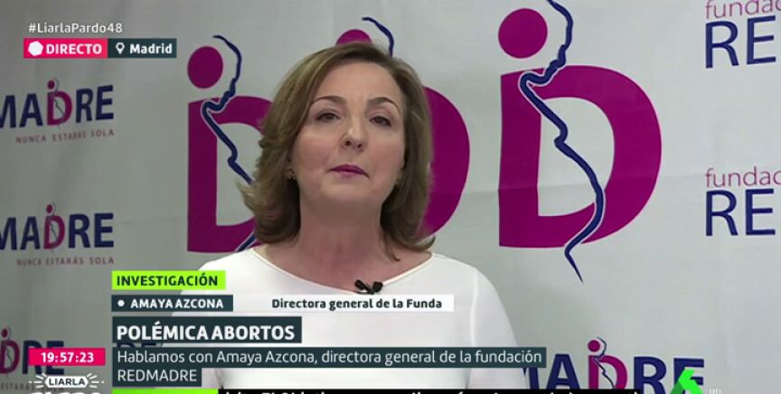 Liarla Pardo ha mostrado cómo algunas asociaciones presionan frente a las clínicas de interrupción voluntaria del embarazo. Sobre esto ha hablado Amaya Azcona, de la fundación REDMADRE, que ha negado que ellos lleven a cabo este tipo de acciones.