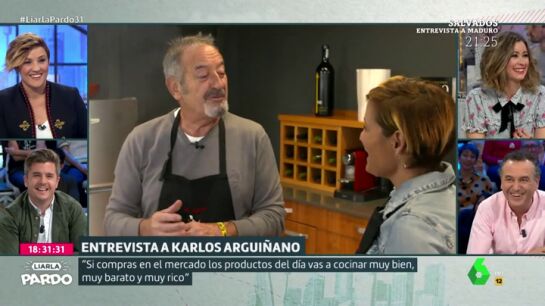Cristina Pardo le ha preguntado a Karlos Arguiñano sobre la "leyenda urbana" de que los los trabajadores del programa se comen su comida cuando termina de cocinar. La respuesta de cocinero español, en este vídeo.