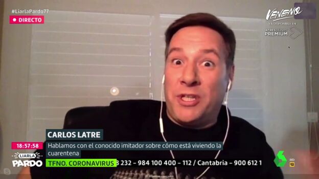 Carlos Latre pone una nota de humor al confinamiento, ofreciendo a los espectadores de Liarla Pardo su última imitación, la del director del Centro de Coordinación de Alertas y Emergencias, Fernando Simón.