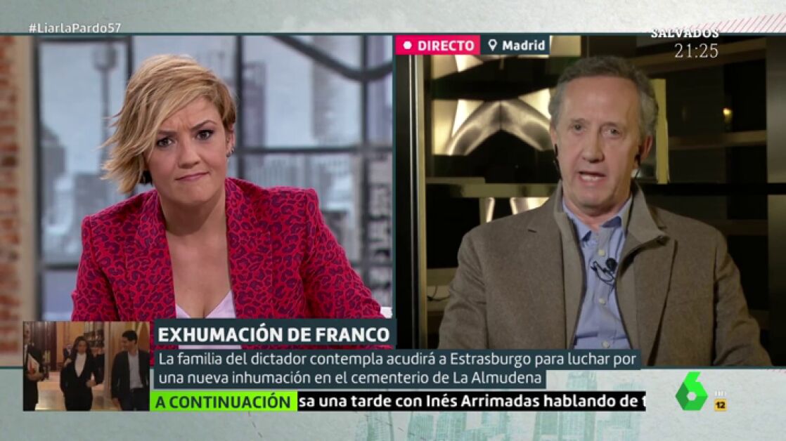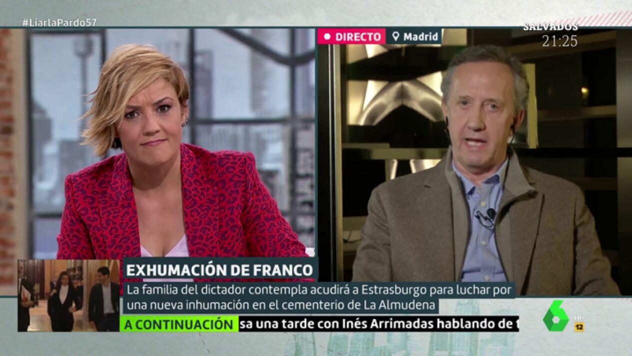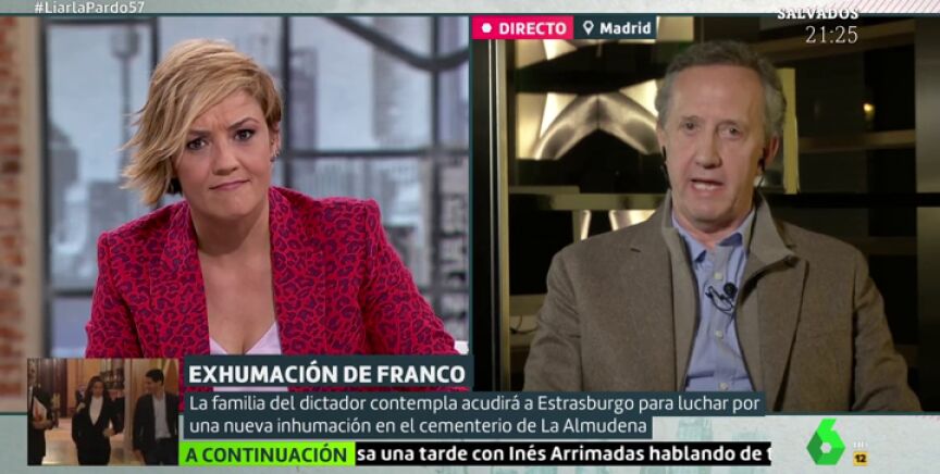 Este momento de la entrevista de Cristina Pardo al portavoz de la Fundación Franco, Jaime Alonso, ha provocado los aplausos del público de Liarla Pardo.