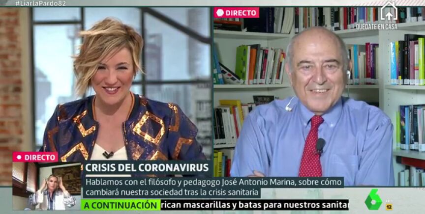 José Antonio Marina cree que los españoles "saldremos iguales" tras superar la epidemia de coronavirus. Así lo ha considerado el filósofo, escritor y pedagogo en una entrevista concedida al programa Liarla Pardo: "Los seres humanos cambian con mucha lentitud. Cuando pasen las situaciones de emergencia, volveremos a los hábitos que hemos tenido siempre".