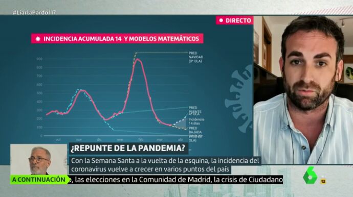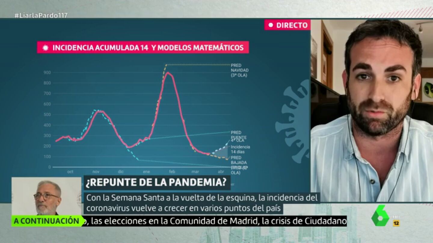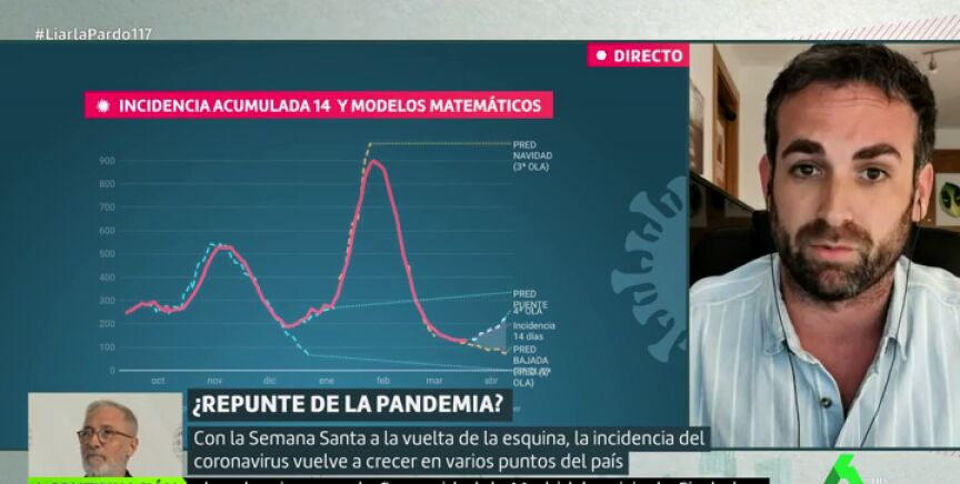 El matemático Santiago García Cremades, matemático ha hablado en Liarla Pardo sobre la una "posible cuarta ola que ya se puede intuir". "Se habla mucho del repunte en contagios diarios, pero hay que insistir en la incidencia acumulada, que es la medida que el Instituto de Salud Global de Harvard recomienda para ver las tendencias claras, y llevamos tres días sin tendencia a la baja a nivel nacional".