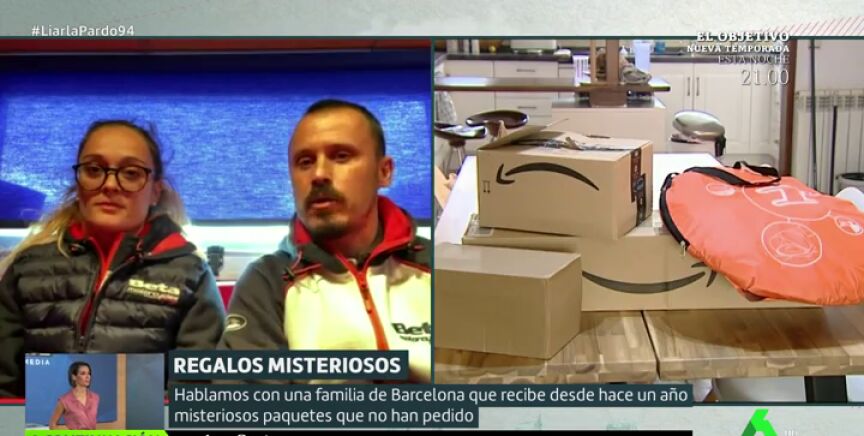 El paquete no llevaba nombre en el remitente, pero sí el destinatario: Toni. Pero la pareja ni siquiera tiene cuenta en la página de compra online. Desde entonces, cada mes reciben una media de dos paquetes, asegura Toni en Liarla Pardo.