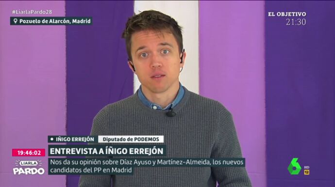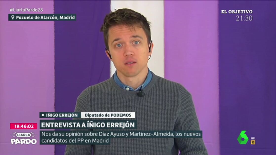 El candidato por Podemos a la presidencia de la Comunidad de Madrid opina en este vídeo sobre Díaz Ayuso y Martínez-Almeida. Errejón asegura que desconoce "cuál es la línea de los nuevos candidatos del PP" en Madrid.