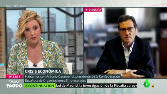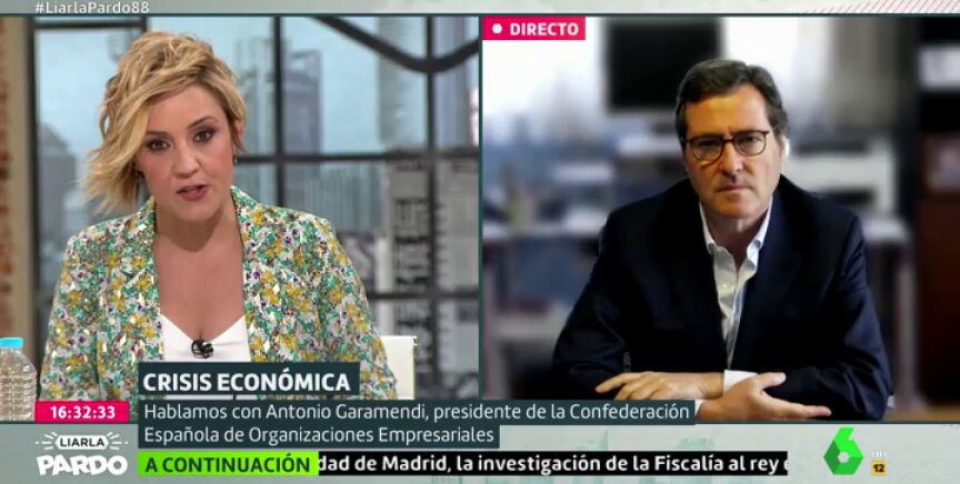 Cristina Pardo entrevista en Liarla Pardo a Antonio Garamendi, quien ha destacado que es verdad "que la OCDE ha dicho que, si hubiera un rebrote realmente llegaríamos a un menos 15% del PIB" y, por tanto, España se situaría "la primera de la clase pero al revés".