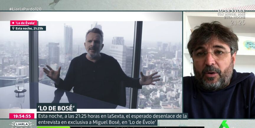 El periodista Jordi Évole ha desvelado en Liarla Pardo que le sugirió a Miguel Bosé quitar algunas cosas de la entrevista, pero que el cantante prefirió que no. "Se siente portavoz del movimiento negacionista", asegura Évole.