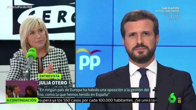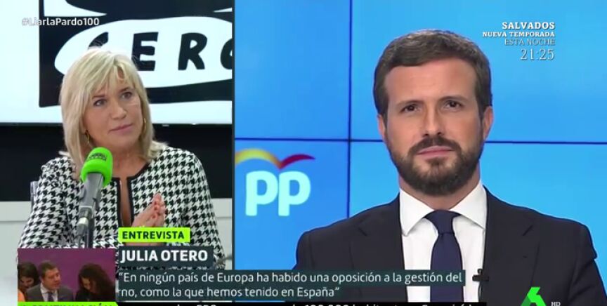 La periodista ha afirmado en Liarla Pardo que "en ningún país de Europa ha habido una oposición a la gestión del Gobierno como la que ha habido en España" y espera que Casado, con la moción de censura de Vox, "haya entendido que ese es el camino".