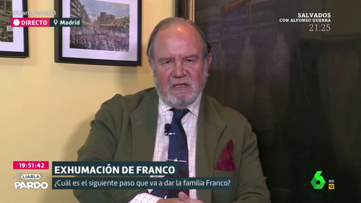 El presidente de la Fundación Franco tacha de "inconstitucional" e "ilegal" el acuerdo de exhumación del Gobierno porque "la basílica es inviolable y sagrada". También se ha mostrado tajante sobre lo que pasará con el dictador: "El generalísimo seguirá en el Valle de los Caídos".