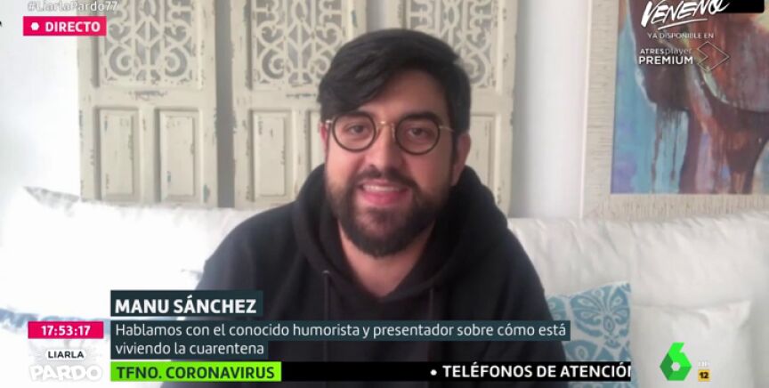 El cómico Manu Sánchez pasa por Liarla Pardo para hablar sobre cómo está llevando el periodo de confinamiento, reconociendo que le está "costando hacer humor" de esta situación.