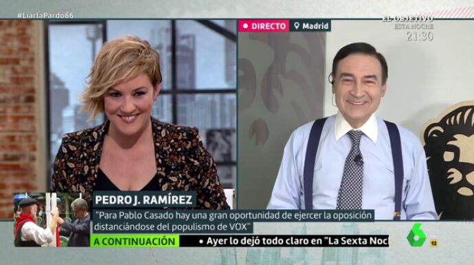 Pedro J. Ramírez analiza en Liarla Pardo el nuevo Gobierno entre PSOE y Unidas Podemos. El periodista destaca que ve "claramente que Vox se esta convirtiendo en un partido antisistema": "Veremos cómo intentará buscar votos en el propio caladero de Podemos igual que han hecho la ultraderecha francesa e italiana".