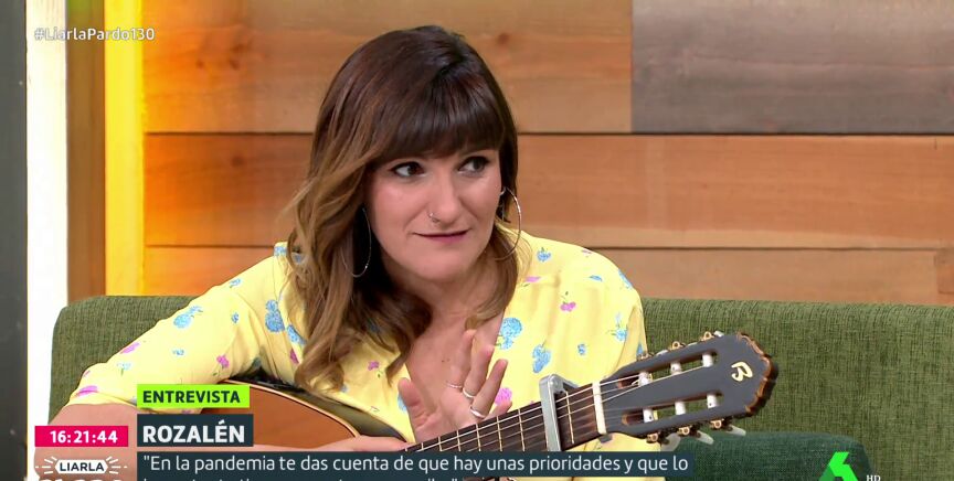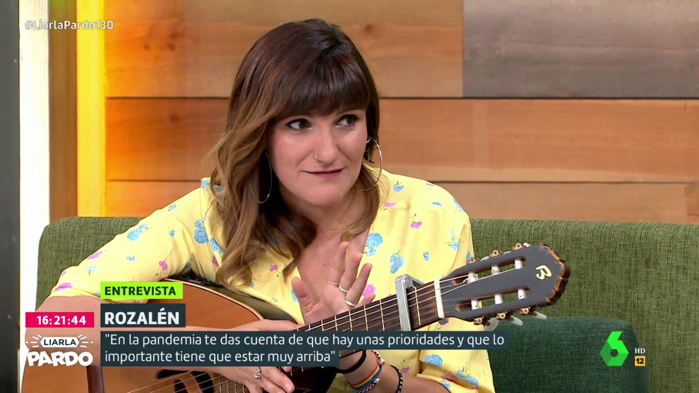 Cristina Pardo entrevista en el plató de Liarla Pardo a Rozalén, quien aparece con guitarra en mano. "Siempre la llevo encima como prolongación de mi cuerpo por lo que pueda pasar", afirma la artista, que cuenta cómo ha vivido volver a los escenarios tras la pandemia del coronavirus. "Llevamos cinco concierto", destaca emocionada y afirma que ha sido "como surrealista" ver cómo "cuando deseas algo con tanta fuerza llega el día".