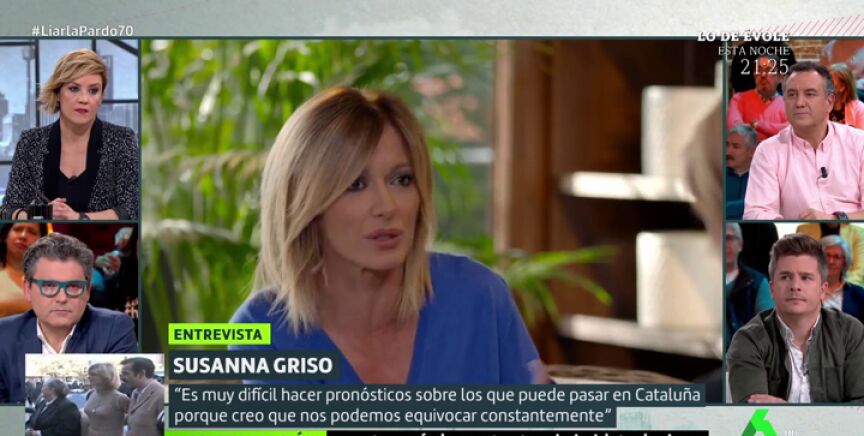 Susanna Griso se ha mostrado sorprendida en Liarla Pardo por el hecho de que algunas filas del independentismo consideren a ERC un partido "traidor": "Es impresionante, es algo que me tiene absolutamente alucinada", ha espetado.