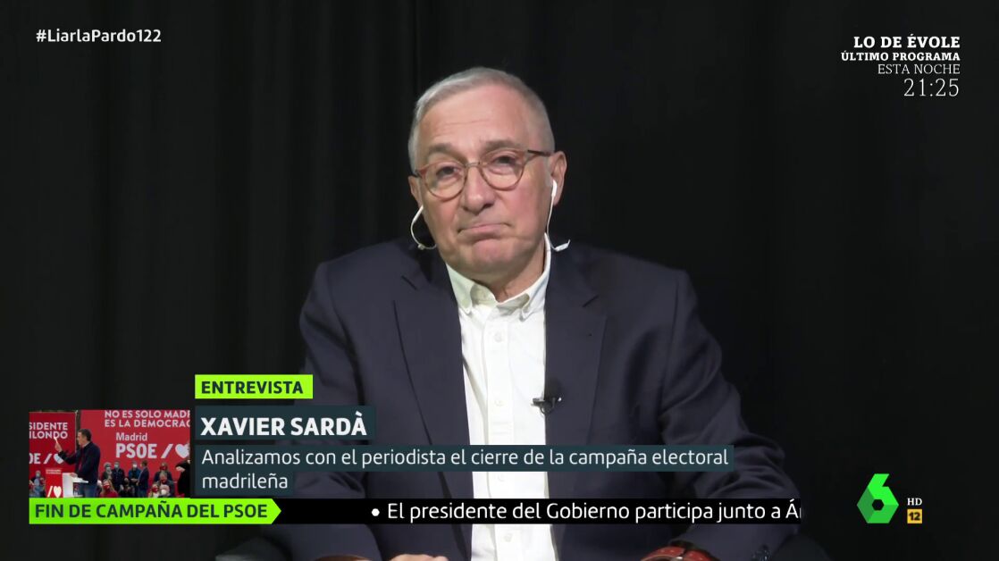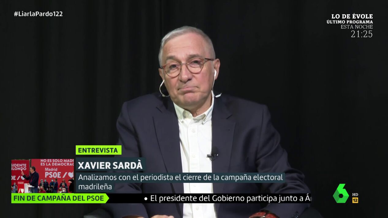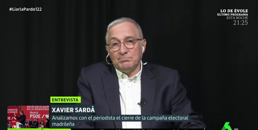 El periodista Xavier Sardà ha considerado que no han faltado emociones a la campaña madrileña hacia las elecciones del 4M. Su argumento es el de que Isabel Díaz Ayuso es "independentista" y "soberanista" y "no es trumpista en realidad". Cree que "invita a los madrileños a formar parte de un Madrid especial y que la izquierda no forma parte de ese nuevo Marid". "Plantea una comunidad contra un enemigo exterior, y es de un clasicismo que resuena en Madrid", señala.