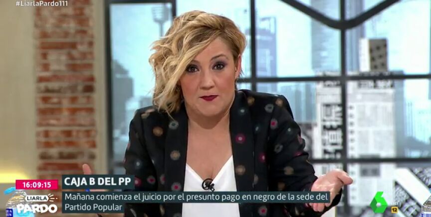 Cristina Pardo cuestiona en Liarla Pardo la estrategia del líder del PP para desvincularse de las acusaciones de Luis Bárcenas: "Pretender borrar una parte de la historia diciendo que no tiene nada que ver contigo cuando llevas ahí desde la primera comunión me parece complicado", señala la presentadora.