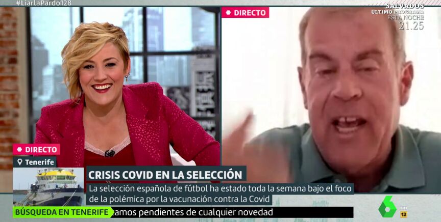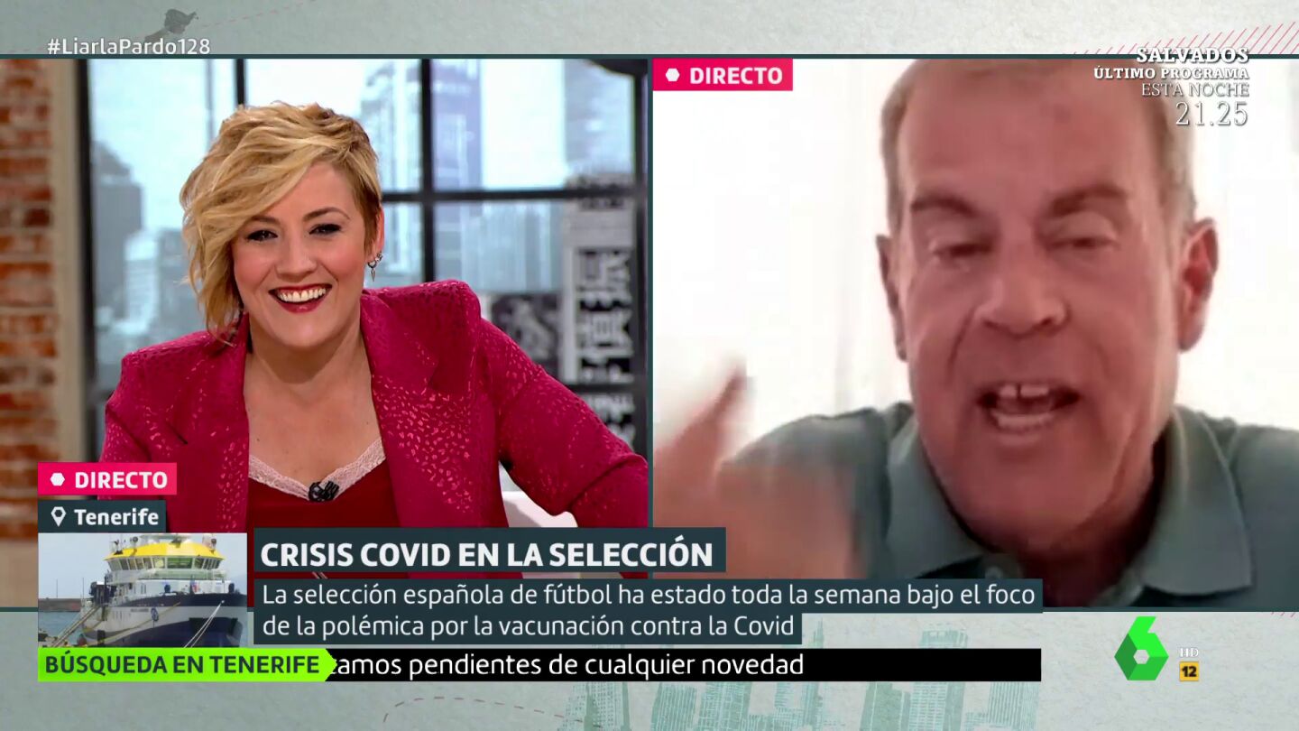 "¡Campeones, Pardo! Guarda este momento histórico en este programa que dejarás tirado... ¡Campeones!", zanja ante la risa de Cristina Pardo. Cree que la vacuna va a dar "un algo" a los jugadores de Luis Enrique para auparles al triunfo basándose en su propia experiencia personal.