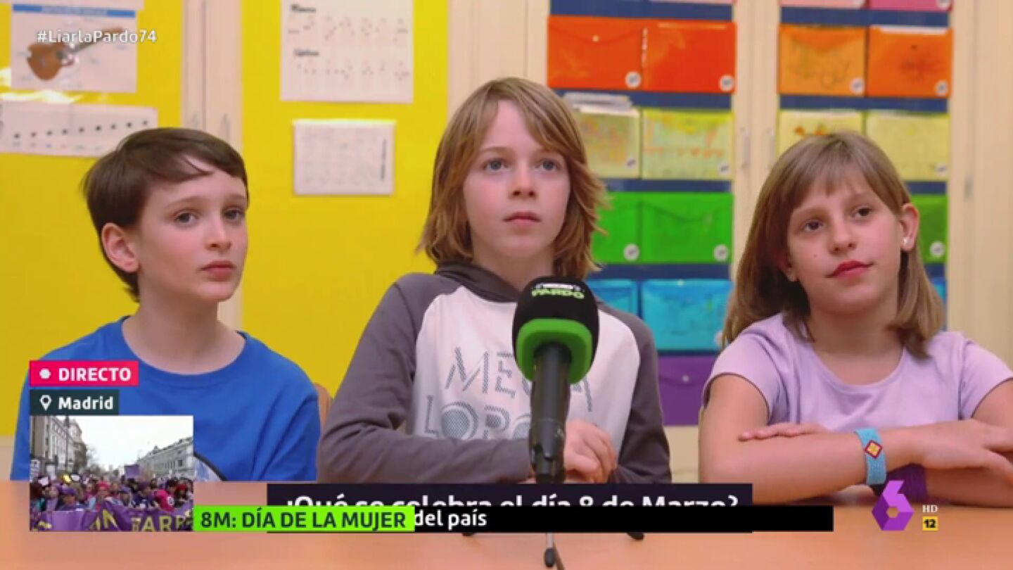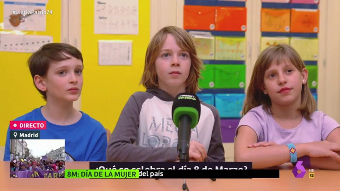 El día 8 de marzo es el Día Internacional de la Mujer y las reivindicaciones por la igualdad saltan a la calle. Una de las batallas del feminismo está en los colegios: la educación es el pilar que permitirá un futuro más igualitario, por eso, Liarla Pardo ha acudido a un colegio madrileño a preguntar a los más pequeños qué significa para ellos.