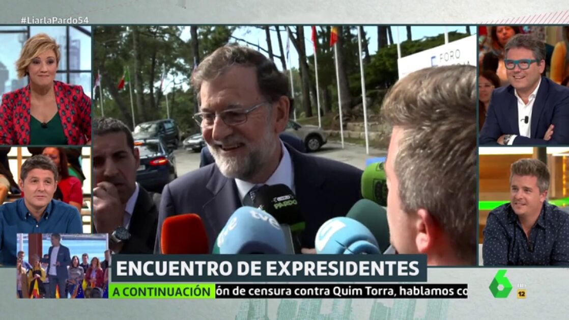 En el momento de la foto de Rajoy con González, Troya ha intentado hablar con el que fue presidente de 2011 hasta 2018. Allí, Mariano Rajoy ha dicho estar "en buena compañía". En lo referente a la relación entre ambos, Felipe González ha asegurado: "Mal, mal nunca nos hemos llevado. Siempre de regular a bien".