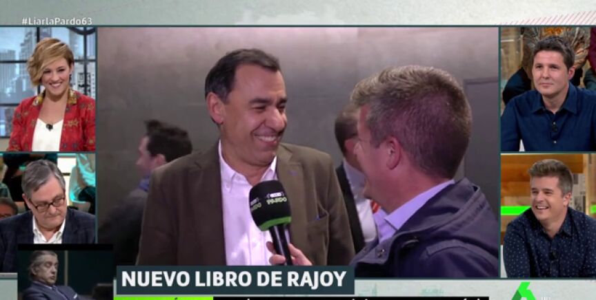 Al acabar la presentación, Troya quiere conseguir por todos los medios que Rajoy le firme el libro. Incluso se lo pide a José Ignacio Wert, que dice que se ponga a la cola, al igual que Rajoy, cuando se lo pide a gritos en la distancia. Al final no consigue una firma del expresidente del Gobierno, pero sí "un saludo para todos".