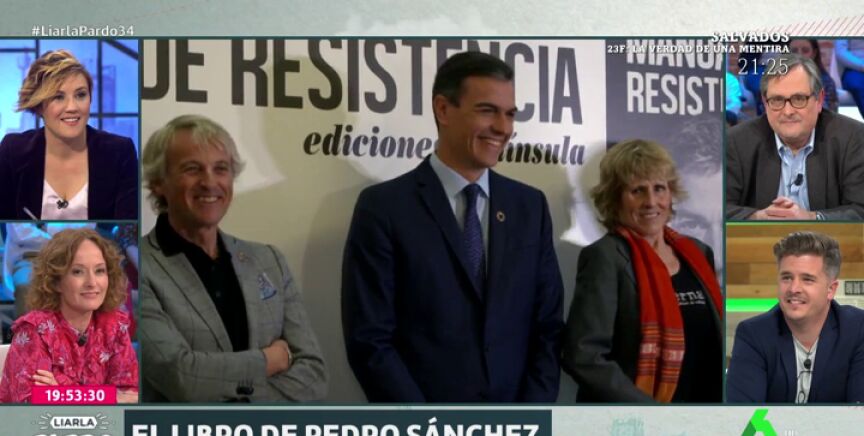 Luis Troya se acerca entonces a la presentación del libro de Pedro Sánchez. El presidente del Gobierno llega al acto junto a su mujer. Mercedes Milá y Jesús Calleja conducen la presentación