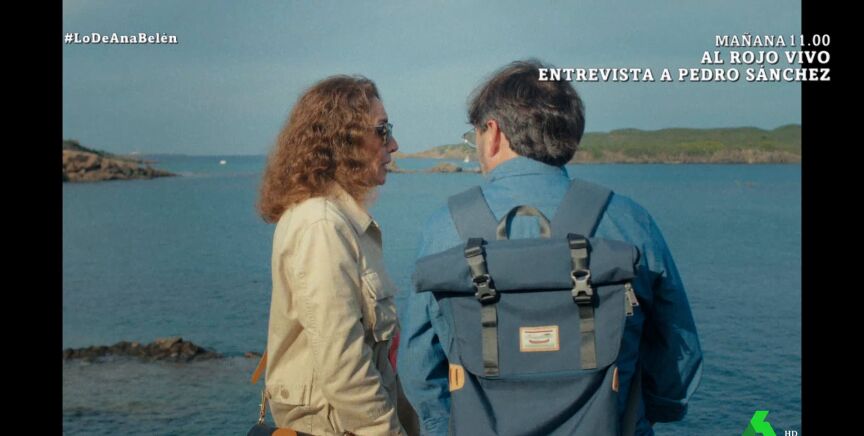 Jordi Évole y Ana Belén pasean por Menorca con el mar de fondo, cuando la artista le cuenta una emotiva anécdota sobre la primera vez que lo vio, en Rota.