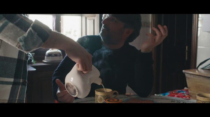 Hay un detalle que choca a Évole, que es el recipiente en el que Cuevas le sirve la leche, con una forma de lo más peculiar. "Hostia, parece una polla, ¿no?", se pregunta entre risas el periodista. El artista le saca de dudas rápidamente: "Parece no, es. Es un pollón dorado. Pero, ¿cómo es de guapo?".