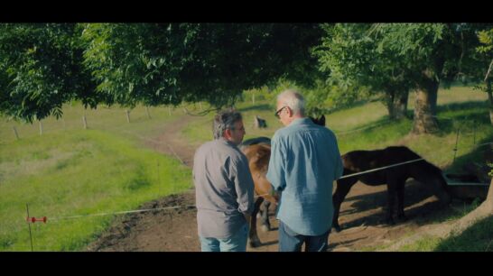Mientras echan de comer manzanas a los caballos, Jordi Évole y Juan José Millás reflexionan sobre asuntos trascendentales de la vida y recuerdan a las hormigas, a las que tampoco nos parecemos en la sociedad actual.