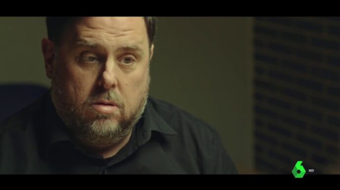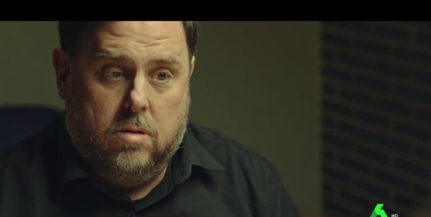 Sobre su estancia en la cárcel, Évole le dice a Junqueras: "Hay quien dice que usted está en el 'hotel Lledoners'", a lo que el líder de ERC se ríe y responde: "Ya lo veis. Si esto es un hotel..".