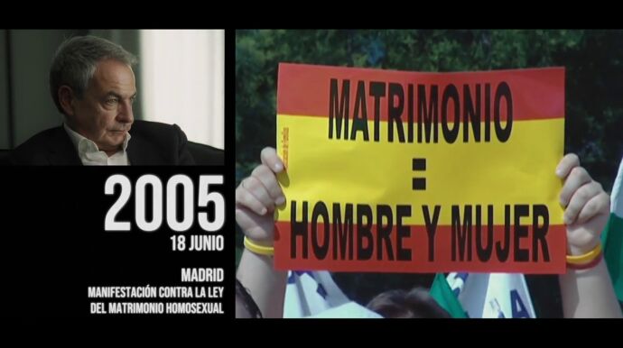 Al ver estas imágenes de nuevo, Zapatero reconoce sentir "cierta satisfacción". "No sé si hay más de hipocresía o de verdad como protesta ante una política. Están en la manifestación contra la ley del matrimonio igualitario, que impugnaron, y resulta que se aprueba la ley y a los pocos meses se empiezan a casar parejas del PP y Rajoy va a una boda", reconoce.