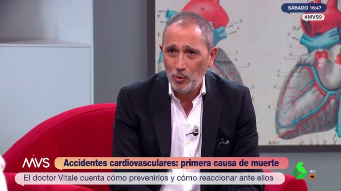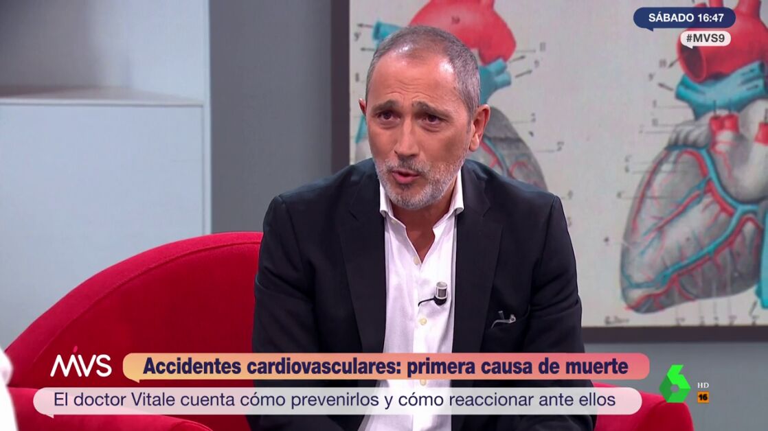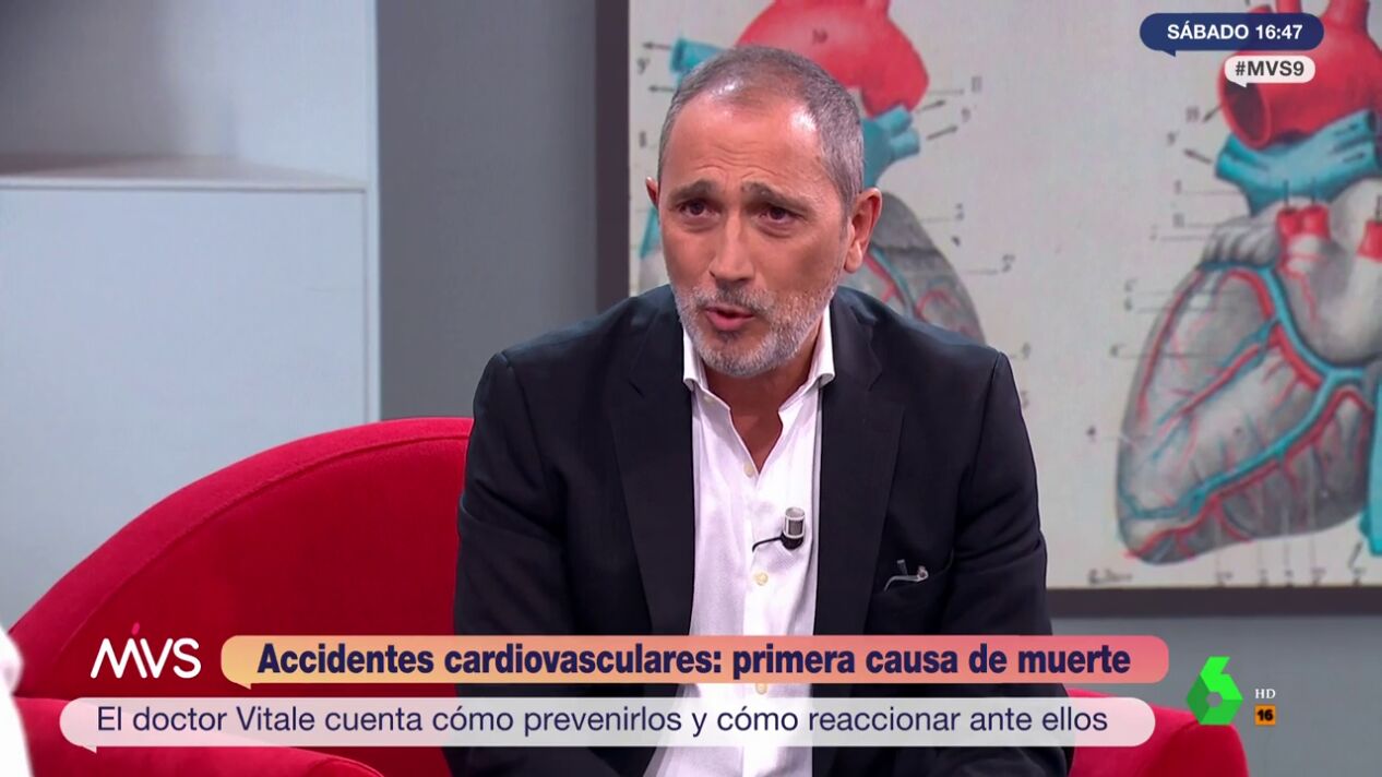 El cardiólogo Gustavo Vitale visita el plató de Más Vale Sábado para hablar de enfermedades cardiovasculares, que se han convertido en los últimos años en la primera causa de muerte entre los españoles. Por eso, en el programa explica cómo prevenir este tipo de patologías cambiando nuestros hábitos diarios y recomienda "una dieta saludable, hacer ejercicio, descansar bien, reducir el estrés y no fumar".