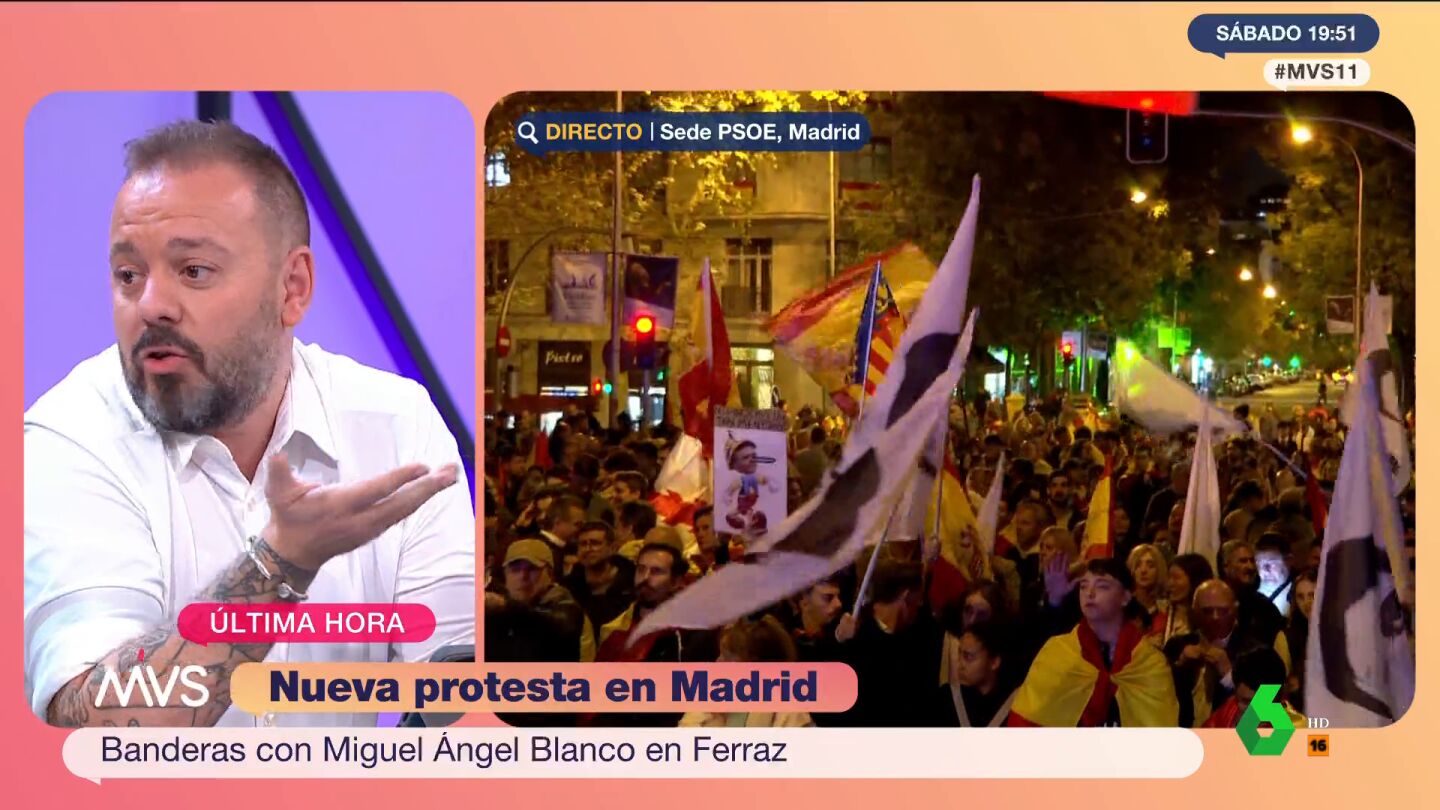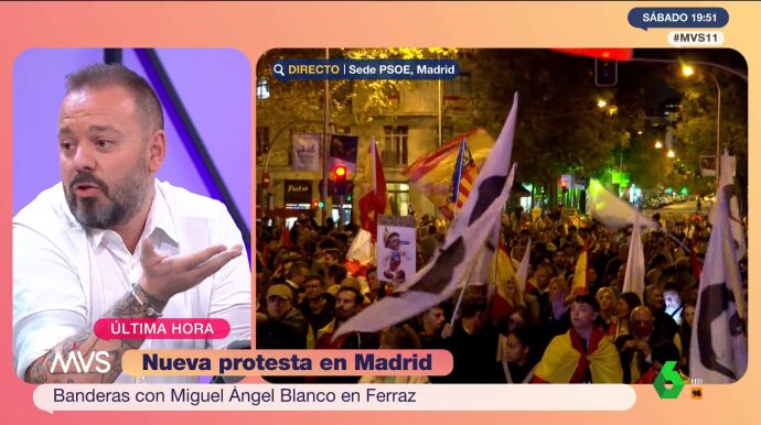 Antonio Maestre ha denunciado la utilización de banderas con el rostro de Miguel Ángel Blanco durante las protestas en Ferraz. "Si a alguien le importa la memoria de Miguel Ángel Blanco, no la usa ahí", ha expresado el escritor y periodista durante su participación en el programa Más Vale Sábado.