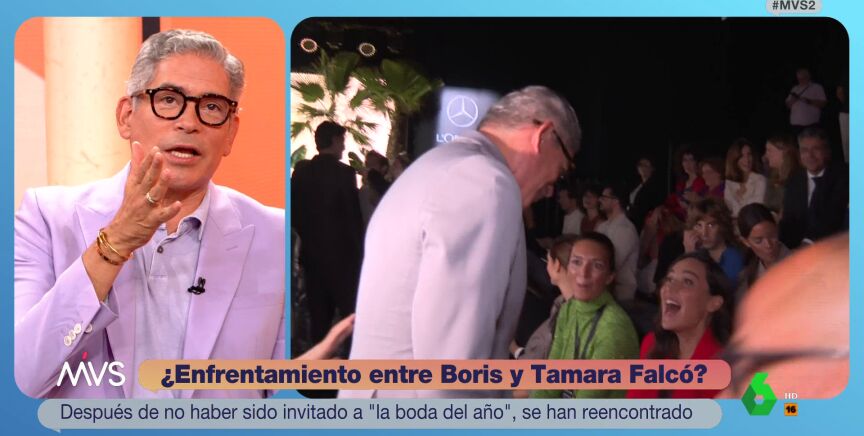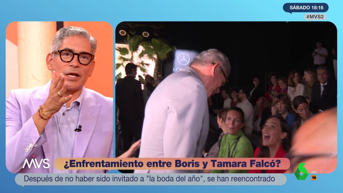 Boris Izaguirre y Tamara Falcó han sellado su reconciliación con un beso en el front row del desfile de Pedro del Hierro, en la Madrid Fashion Week. Un gesto que ha sido muy comentado por la prensa y que el venezolano ve por primera vez en Más Vale Sábado: "fue muy agradable", aunque "estaba nervioso por el momento", reconoce.