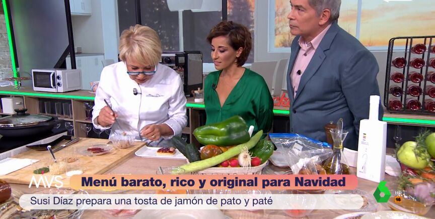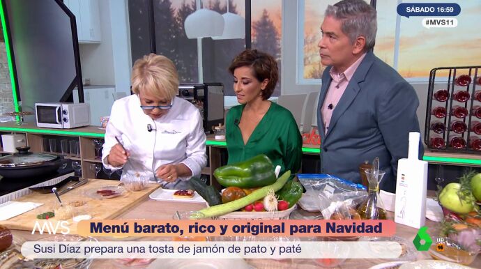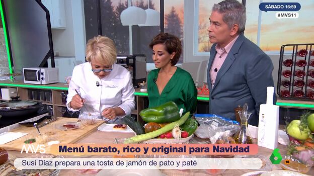 Susi Díaz, cocinera con una estrella Michelín, visita el programa Más Vale Sábado donde hace una interesante propuesta de menú navideño. Lo hace, eso sí, pensando en el bolsillo, pero sobre todo en el sabor, como puede observarse en el vídeo situado sobre estas líneas. "Siempre hay que empezar los menús con algo sencillo para ir abriendo boca", recuerda Díaz, quien enseña cómo cocinar una tosta con jamón de pato y paté.