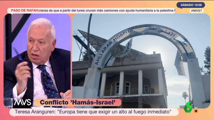 El exministro de Asuntos Exteriores,José Manuel García-Margallo, visita Más Vale Sábado para hablar del conflicto entre Israel y Palestina. "¿Quién puede detener esta invasión?", le pregunta Boris Izaguirre. "La comunidad internacional, pero en la comunidad internacional quien tiene un peso decisivo sobre la región son los Estados Unidos", responde.