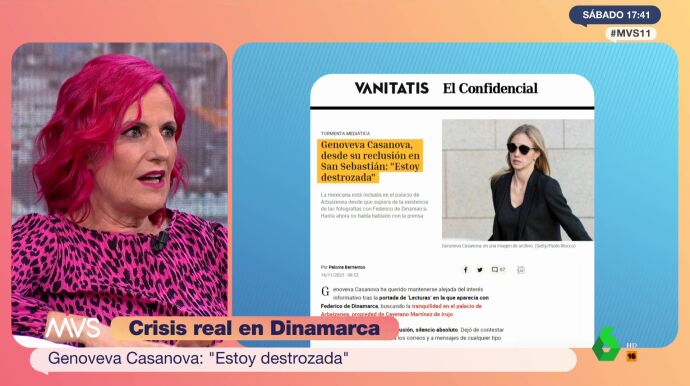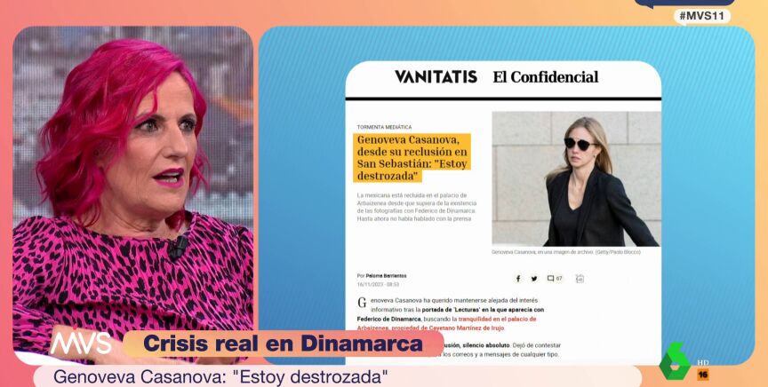Karmele Izaguirre desvela en Más Vale Sábado que Genoveva Casanova abandonó Madrid "tan solo unas horas antes" de que conociera la existencia de sus fotos con Federico de Dinamarca: "Le dio tiempo a coger el coche e ir a Donosti".
