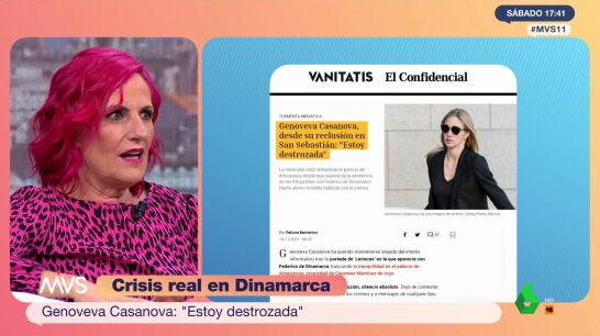 Genoveva Casanova ha abandonado Madrid para refugiarse en Donosti. Según comenta Karmele Izaguirre, redactora jefe de la revista Lecturas, en Más Vale Sábado: "Solo unas horas antes, cuando Vanitatis anunció ese bombazo sin decir el nombre de la mujer, le dio tiempo a coger el coche e ir a Donosti".