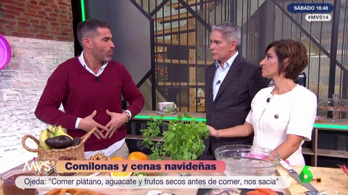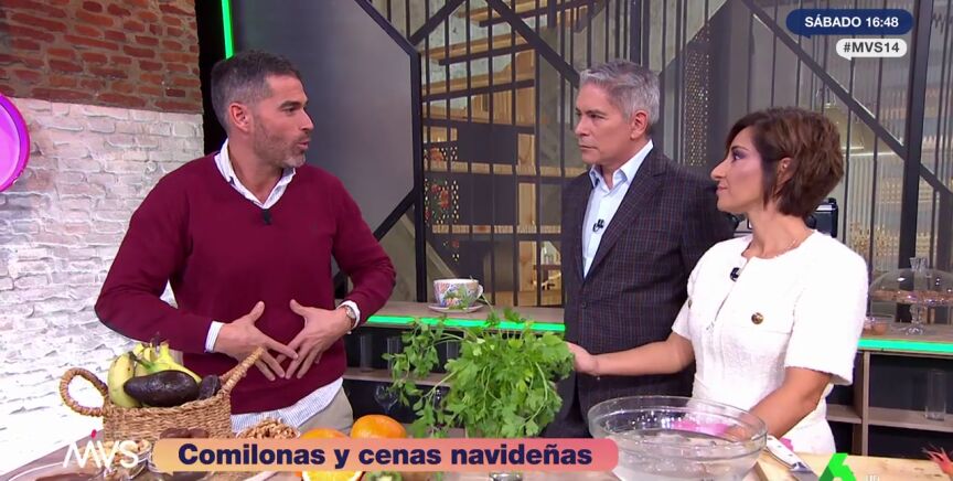 El nutricionista Pablo Ojeda visitó el plató de Más Vale Sábado para explicar cómo hacer para no inflarnos en las comidas y cenas de Navidad, que pueden provocar malas digestiones y que cueste ir al baño, entre otras muchas cosas. "Lo primero es no llegar con hambre", aconsejó. Y, es que, aunque nos guste reservarnos para estas comidas especiales, lo cierto es que tenemos que hacer "todo lo contrario": "Tenemos que llegar saciados".