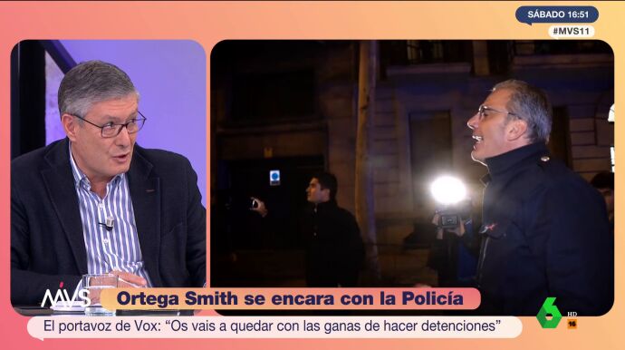 José María Benito, inspector de Policía, ha criticado en Más Vale Sábado que "Ortega Smith se ha convertido en un alborotador más que está echando a la gente en contra de la Policía". "Además, hace uso de una ignorancia supina, porque ayer acusaba al responsable policial de no tener ni idea cuando hablaba de seguridad ciudadana, pero el que no sabe y no tiene ni idea es él", ha manifestado el policía.