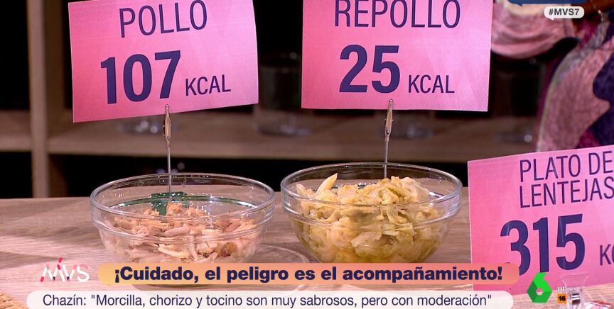Así, contó que podemos hacer un cocido saludable con "repollo, pollo y huesos": "El repollo tiene 25 calorías y el pollo 107, pero si le echamos tocino, chorizo y morcilla las triplicamos", advirtió Chazín, quien subrayó que una alternativa saludable es "echar huesos, porque dan mucho sabor y no tienen tanta grasa".