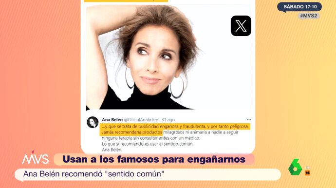 Pero no es el único, son muchos los famosos que son víctimas de estafas como estas. También se han visto afectados presentadores, actrices o cantantes, como Ana Belén, que ha tenido que salir a desmentirlo para limpiar su imagen. En su caso la han vinculado con un producto milagroso para las articulaciones.