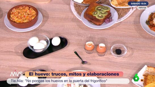 Carmen Tía Alia visita el plató de Más Vale Sábado para resolver todas las dudas sobre los huevos, uno de los alimentos más completos, ya que son ricos en proteínas, minerales y vitaminas. Una espectadora le plantea la siguiente duda: "¿Por qué los huevos cuando los compramos en el supermercado están fuera del frigorífico y cuando llegamos a casa los metemos en la nevera?".