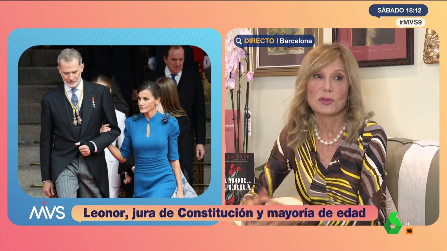 Pilar Eyre ha hablado en Más Vale Sábado de la jura de Leonor, y ha expresado que le "gustó mucho la complicidad de la princesa con su padre". "Es una relación que ha evolucionado con el tiempo, porque antes la complicidad la tenía con su padre. Antes, no daba un paso Leonor sin consultar con la mirada a su madre. Y ahora lo hace con su padre. Se nota que tienen una complicidad porque comparten cargos y cargas, y esto les hace mucho más cercanos y cómplices", ha manifestado.
