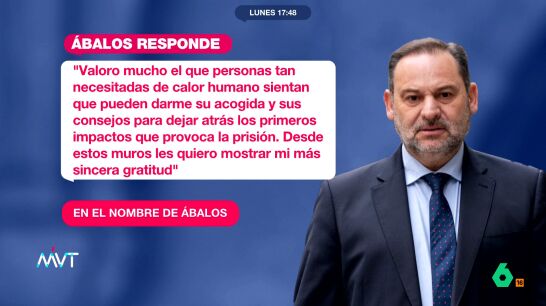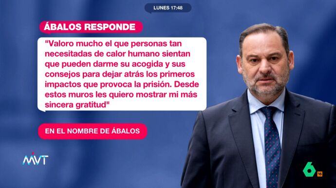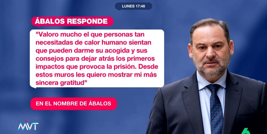 Mensajes que Ábalos ha agradecido en sus redes sociales, donde afirma que "valoro mucho el que personas tan necesitadas de calor humano sientan que pueden darme su acogida y sus consejos para dejar atrás los primeros impactos que provoca la prisión".