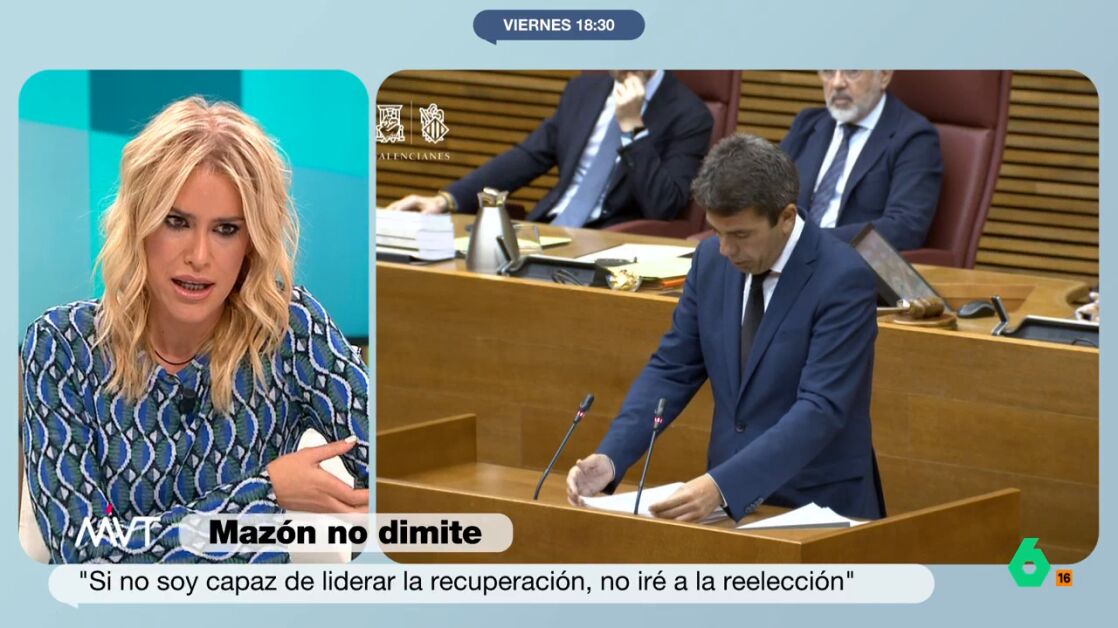 La sindicalista Afra Blanco ha analizado en Más Vale Tarde la comparecencia del presidente de la Generalitat Valenciana, Carlos Mazón, en Les Corts para explicar su gestión de la DANA. Visiblemente indignada, Blanco ha resaltado que "el verdadero debate es, ¿por qué narices abandonó el presidente a su población?". "Ese es el debate y es el que está esperando la población valenciana", ha añadido.