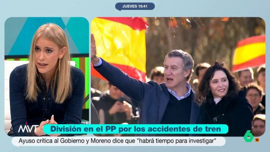Isabel Díaz Ayuso volvía a dinamitar la estrategia del PP, en esta ocasión sobre el trágico accidente de tren en Adamuz, y aprovechaba para cargar contra el Gobierno, la Agenda 2030, el feminismo e incluso llegaba a afirmar que "yo lo que quiero es llegar puntual y con vida".