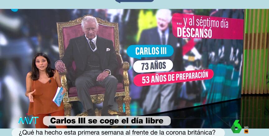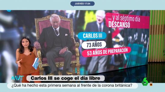 La periodista Conchi Gil desglosa en Más Vale Tarde los datos relativos al calendario de trabajo al que ha hecho frente el nuevo monarca británico, con algunos datos que son cuanto menos curiosos.