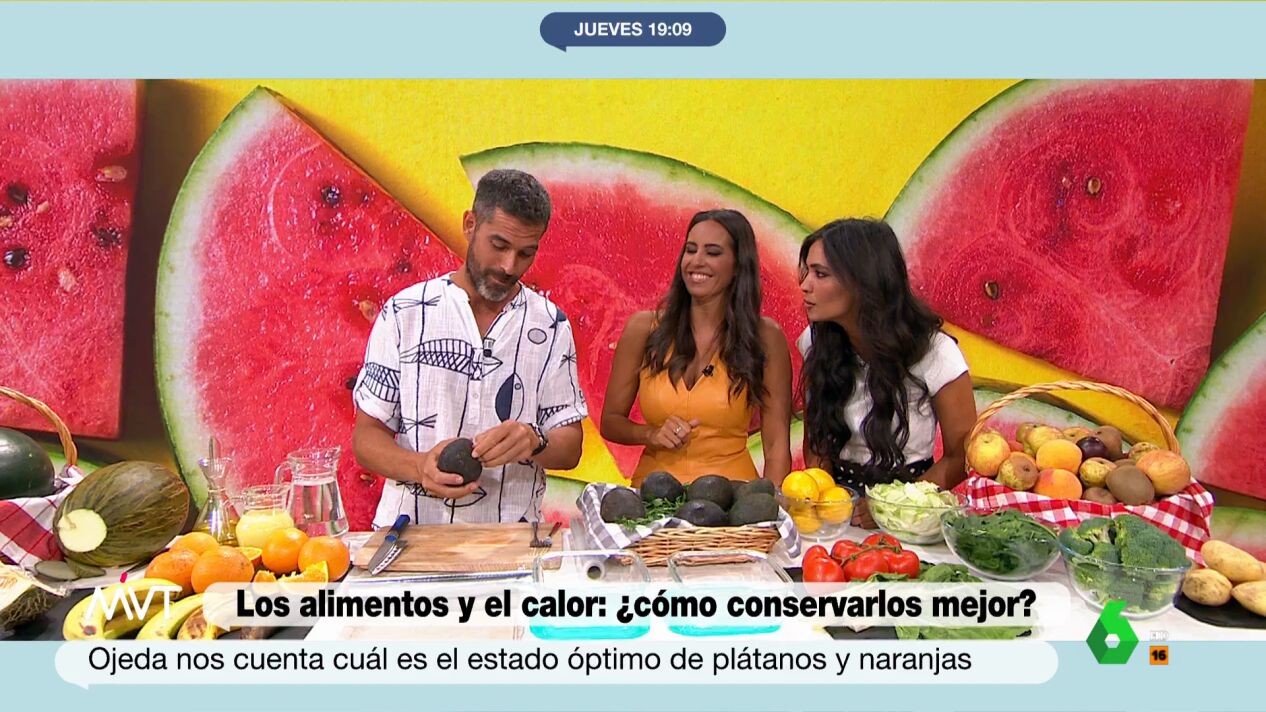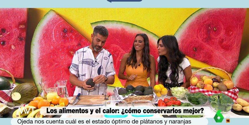 El experto ha dado varias recomendaciones para conservar frutas y verduras y evitar así el desperdicio alimentario. Una de las frutas que se ponen mal rápidamente es el aguacate. Por eso, el primer truco es ver si está muy maduro o no, y Ojeda explica que quitando la parte de arriba se puede comprobar. Si está negro una vez que se lo quitas, quiere decir que está muy maduro, pero si está amarrillo, quiere decir que está en su punto.