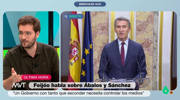 "Me parece fatal que haya control político en los medios pero estoy relajado porque pensaba que Alberto Núñez Feijóo se había quedado mudo", añade. "Si sigue pensando que no reunirse con el presidente es un error, como decía apenas hace tres semanas, pero desde que Ayuso ha dicho que no se quiere reunir, está completamente callado... parece que con esa cosa en concreto sigue mudo", afirma. "Prefiere hablar de Ábalos que, evidentemente, es muy preocupante, pero las cosas que han presentado ellos igual debería decir algo también", concluye.