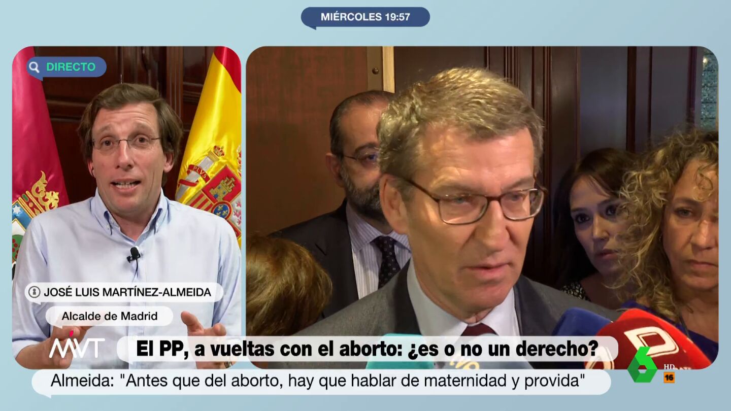 El alcalde de Madrid, José Luis Martínez-Almeida, se suma a las palabras de Alberto Núñez Feijóo respecto al aborto, afirmando que "no es un derecho fundamental". En Más Vale Tarde, Almeida ha trasladado las "posiciones provida" que defienden en el PP.