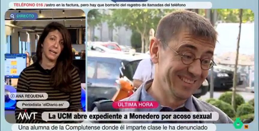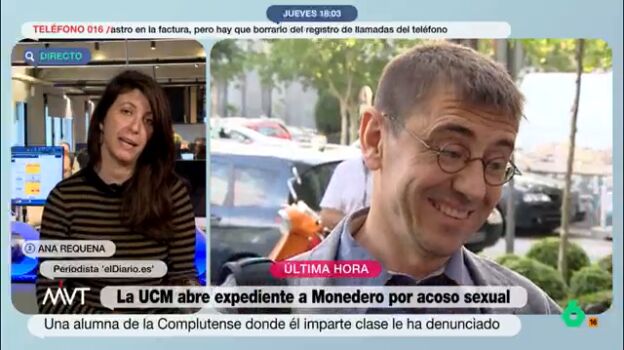 Ningún órgano de Podemos se volvió a poner en contacto con la mujer que denunció a Juan Carlos Monedero por acoso sexual. Así lo ha asegurado la periodista de eldiario.es, Ana Requena, en una entrevista en Más Vale Tarde, donde ha relatado cómo la mujer se puso en contacto con la formación morada, y estos no quisieron indagar en su denuncia.
